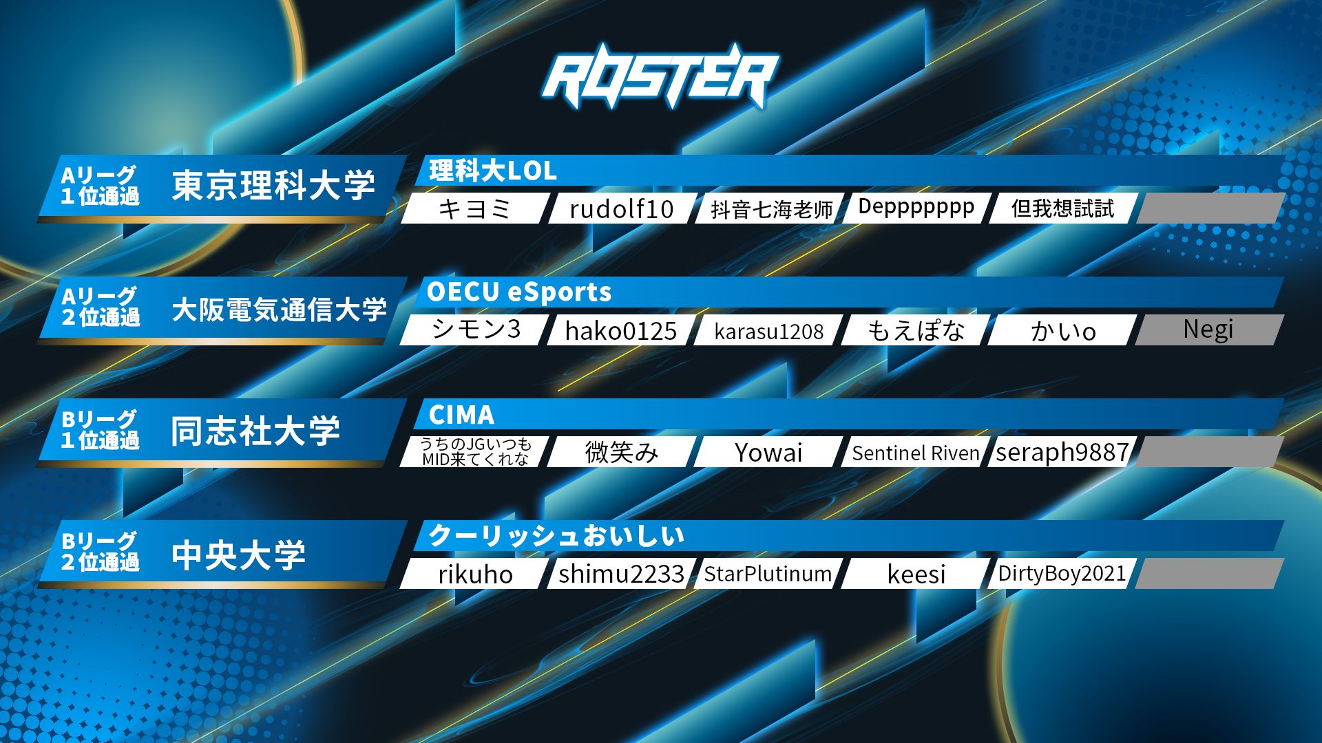| OECU eSports (大阪電気通信大学) | 優勝目指して頑張りたいと思います。 |